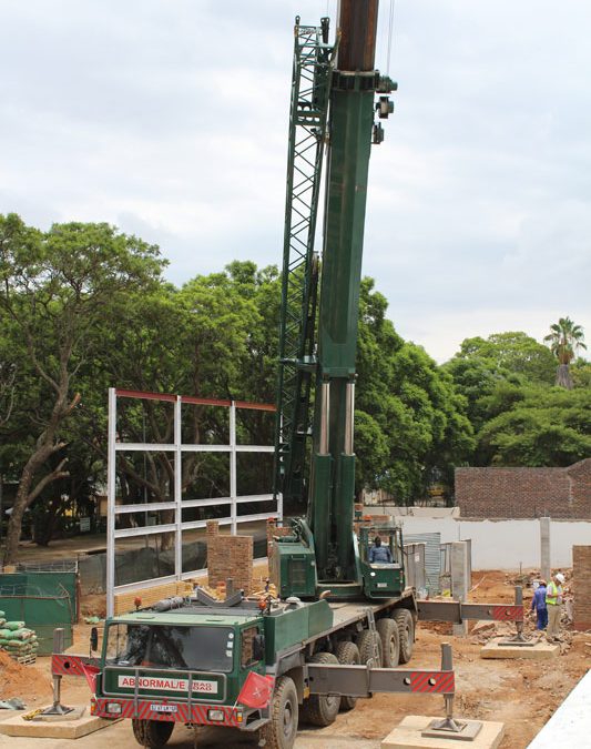 “We had two of our trucks travelling between the factory and the construction site most of the time during the installation phase to ensure timely delivery of the items. They were lifted directly from the trailers using our own mobile crane and one element was installed every six minutes by our competent teams,” Clifford Mogale of CoreSlab says.